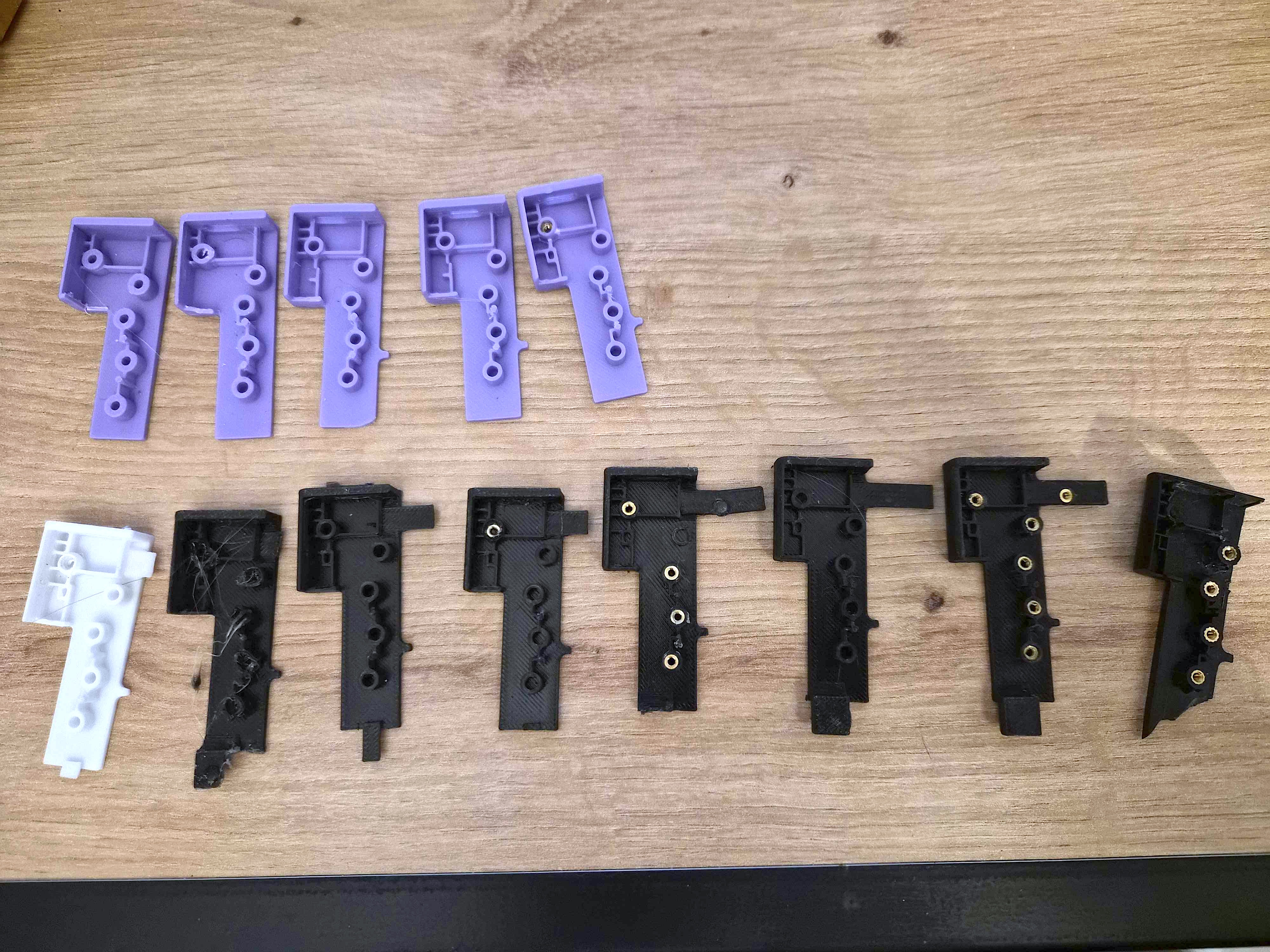 Autre problème : j'avais commencé à utiliser mes inserts métalliques sur les prototypes pour tester l'ensemble, alors que je n'en avais qu'un nombre très limité et que je ne pouvais pas me permettre de les gaspiller sur des versions vouées à l'échec. (Le fer à insert, que j'avais acheté "au cas où" et appris à utiliser sur le tas, s'est avéré être un outil indispensable pour ce projet.)